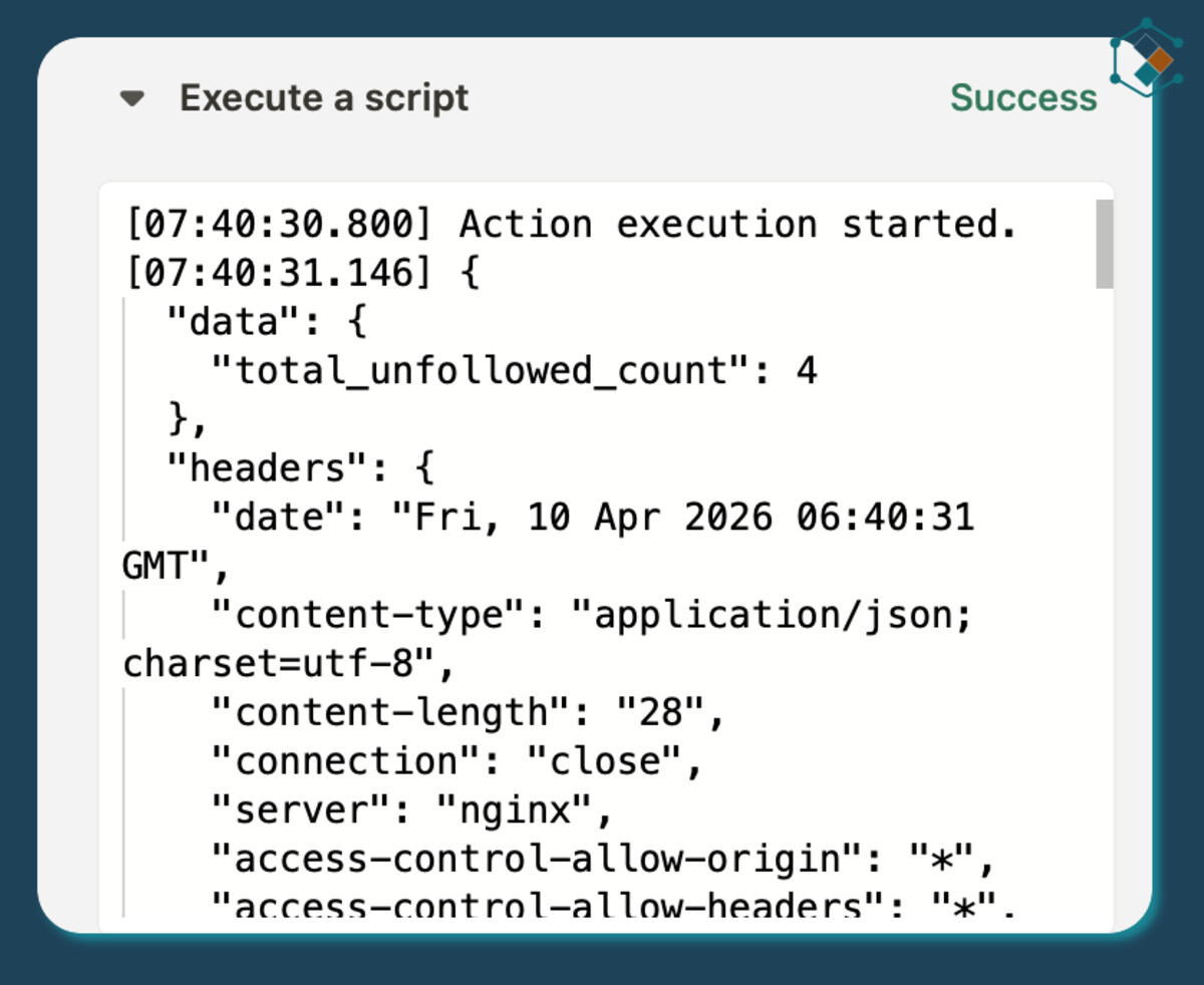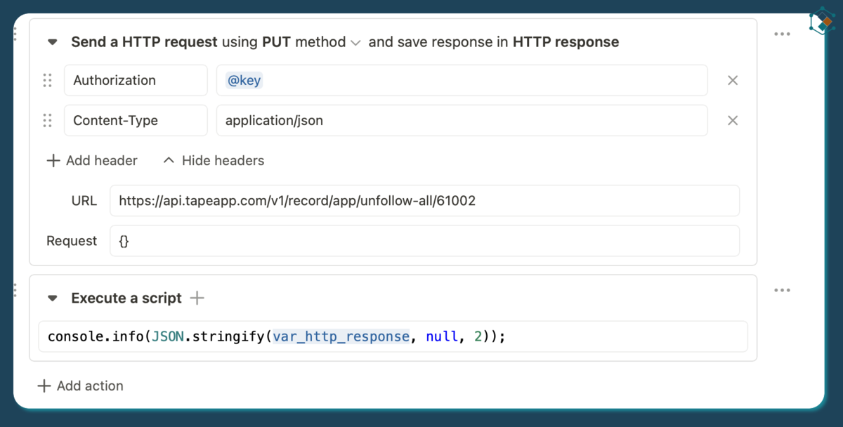 hi Leo, I tried using HTTP Request block and got success response but no values for total_unfollowed_count and as I checked the app, my user still following an item from that app, can you please show how to do this in Tape’s Automation please