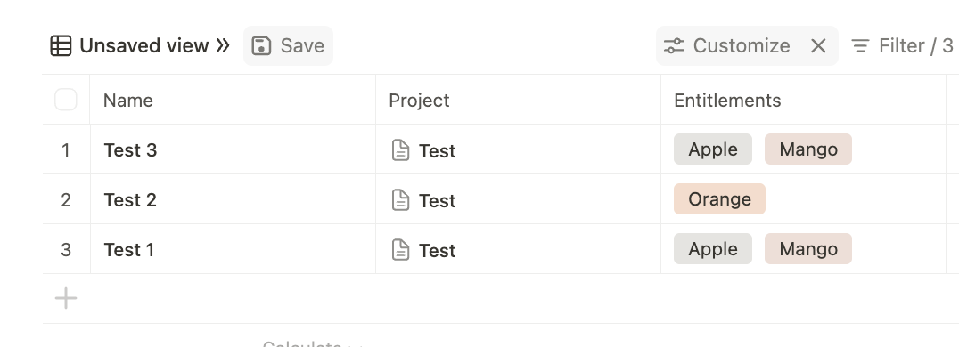 One field from the related item - Entitlements - is a multi-select fields. So in each related item, this particular field might have one value, two values or more.
