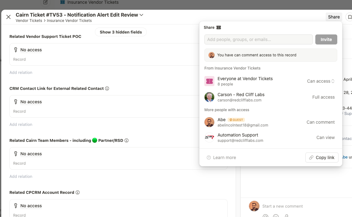 Unfortunately no matter what I try, the guest only seeâs a âNo accessâ title on the related records.