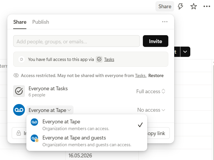 I LOVE that Tape lets us get so granular with these access/visibility settings, even when I admit that this level of detail can make it hard to find some small settings that I donât use very often.