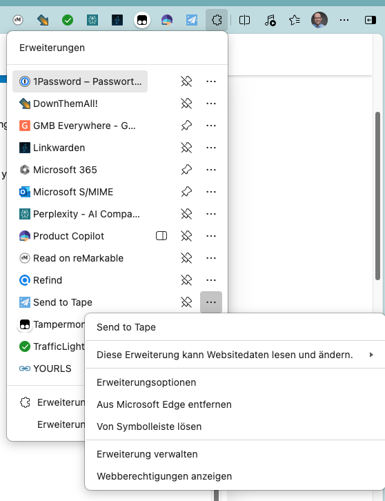 1. Download the extension from Send to Tape - Microsoft Edge Addons (for Edge) or https://twzn.de/s2tc (for Chrome)