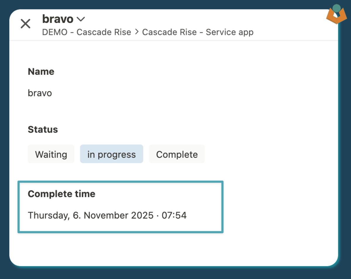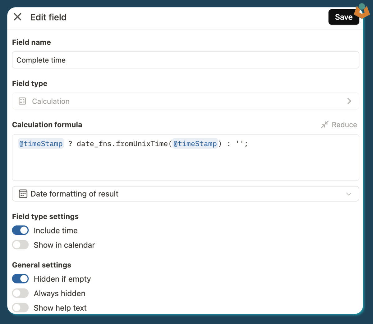 We can add a calculation field that displays the time the process will be completed - handy for those ‘time blind’ amongst us that will either think only 5 mins has passed and in fact it has been 5 hrs or more relevant in this case think 5hrs have passed and it’s only been 5 mins