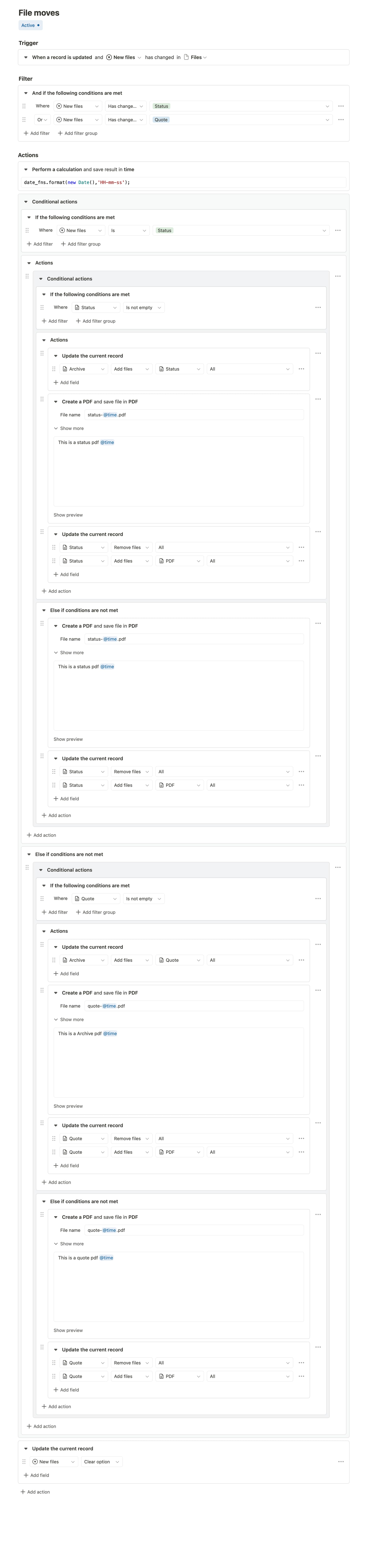 b. the other automation takes the file from the quote pdf file field and puts it into the same archived file field - both automations then clear their respective file fields